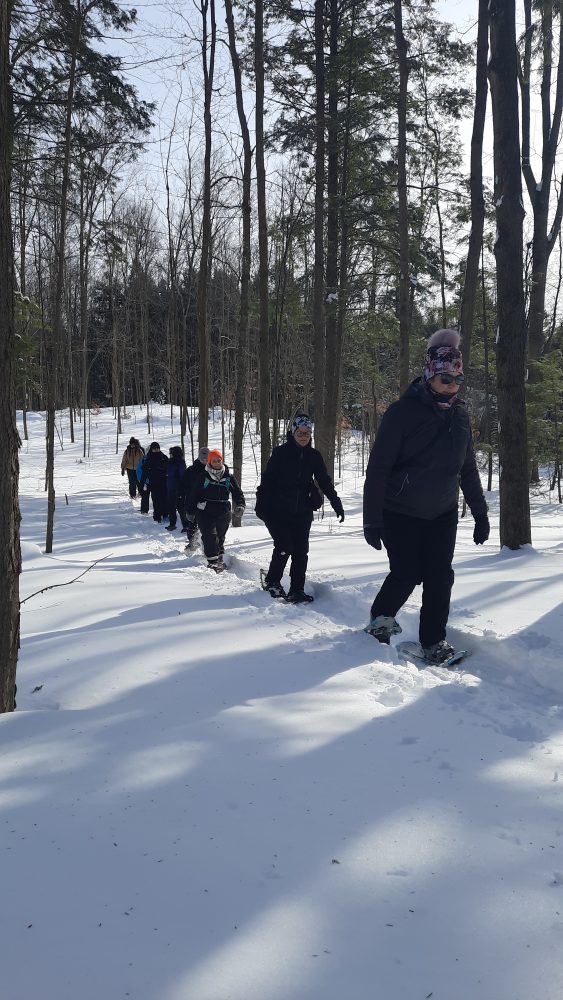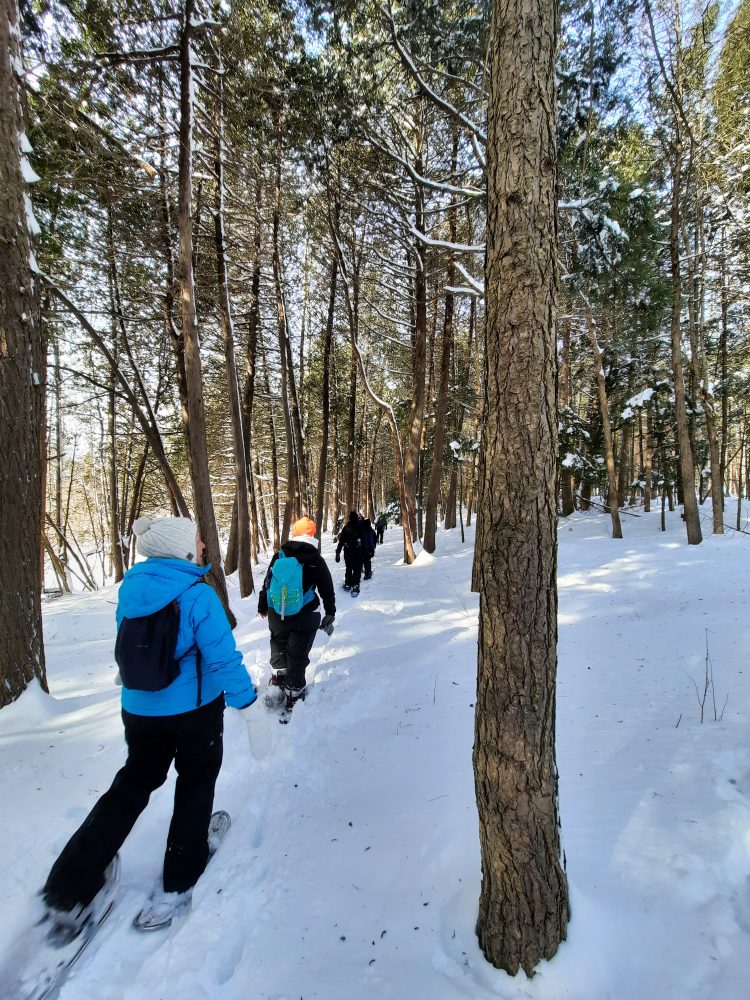 L’aventure commence par une marche à rythme lent à modéré sur des sentiers accessibles à tous, que tu sois en bottes d’hiver ou en raquettes (selon les conditions). Une séance de yoga-neige dynamique, pensée pour étirer tout le corps, te sera proposée.